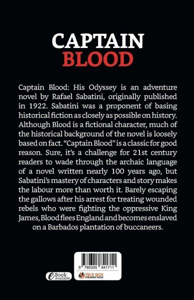 Captain Blood: His Odyssey is an adventure novel by Rafael Sabatini, originally published in 1922. Sabatini was a proponent of basing historical fiction as closely as possible on history. Although Blood is a fictional character, much of the historical background of the novel is loosely based on fact. "Captain Blood" is a classic for good reason. Sure, it's a challenge for 21st century readers to wade through the archaic language of a novel written nearly 100 years ago, but Sabatini's mastery of characters and story makes the labour more than worth it. Barely escaping the gallows after his arrest for treating wounded rebels who were fighting the oppressive King James, Blood flees England and becomes enslaved on a Barbados plantation of buccaneers.
