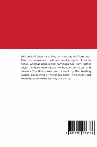This book of avian haiku flies on its inspiration from birds. Blue tits, robins and owls are familiar sights closer to home, whereas parrots and flamingos hail from further afield. All have their distinctive beauty, behaviour and habitats. The title comes from a track by The Peatbog Faeries, concerning a mysterious parrot who might just know the route to the lost city of Atlantis.