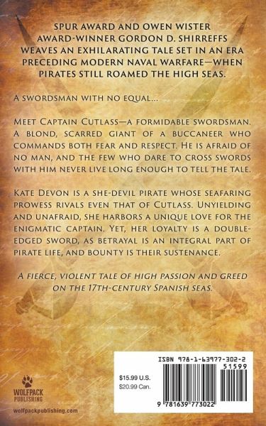 Spur Award and Owen Wister Award-winner Gordon D. Shirreffs weaves an exhilarating tale set in an era preceding modern naval warfare-when pirates still roamed the high seas. A swordsman with no equal... Meet Captain Cutlass-a formidable swordsman. A blond, scarred giant of a buccaneer who commands both fear and respect. He is afraid of no man, and the few who dare to cross swords with him never live long enough to tell the tale. Kate Devon is a she-devil pirate whose seafaring prowess rivals even that of Cutlass. Unyielding and unafraid, she harbors a unique love for the enigmatic captain. Yet, her loyalty is a double-edged sword, as betrayal is an integral part of pirate life, and bounty is their sustenance. A fierce, violent tale of high passion and greed on the 17th-century Spanish seas.