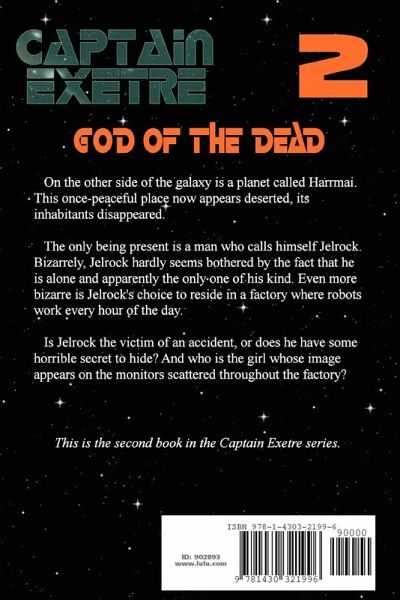 On the other side of the galaxy is a planet called Harrmai. This once-peaceful place now appears deserted, its inhabitants disappeared. The only being present is a man who calls himself Jelrock. Bizarrely, Jelrock hardly seems bothered by the fact that he is alone and apparently the only one of his kind. Even more bizarre is Jelrock's choice to reside in a factory where robots work every hour of the day. Is Jelrock the victim of an accident, or does he have some horrible secret to hide? And who is the girl whose image appears on the monitors scattered throughout the factory? This is the second book in the Captain Exetre series.