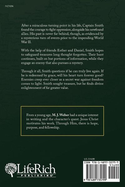 After a miraculous turning point in his life, Captain Smith found the courage to fight oppression, alongside his newfound allies. His past is never far behind, though, as evidenced by a mysterious turn of events prior to the impending World War II. With the help of friends Esther and Daniel, Smith hopes to safeguard treasures long thought forgotten. Their hunt continues, built on but portions of information, while they engage an enemy that also pursues a mystery. Through it all, Smith questions if he can truly live again. If he is redeemed by grace, will his heart turn forever good? Enemies creep ever closer as a secret war against freedom comes to light. Smith sought treasure, but he finds divine enlightenment of far greater value.