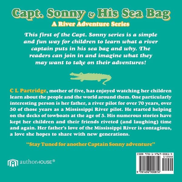 This first of the Capt. Sonny series is a simple and fun way for children to learn what a river captain puts in his sea bag and why. The readers can join in and imagine what they may want to take on their adventures!