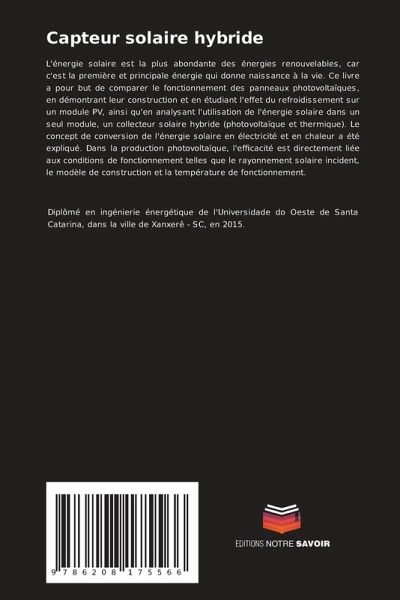L'énergie solaire est la plus abondante des énergies renouvelables, car c'est la première et principale énergie qui donne naissance à la vie. Ce livre a pour but de comparer le fonctionnement des panneaux photovoltaïques, en démontrant leur construction et en étudiant l'effet du refroidissement sur un module PV, ainsi qu'en analysant l'utilisation de l'énergie solaire dans un seul module, un collecteur solaire hybride (photovoltaïque et thermique). Le concept de conversion de l'énergie solaire en électricité et en chaleur a été expliqué. Dans la production photovoltaïque, l'efficacité est directement liée aux conditions de fonctionnement telles que le rayonnement solaire incident, le modèle de construction et la température de fonctionnement.