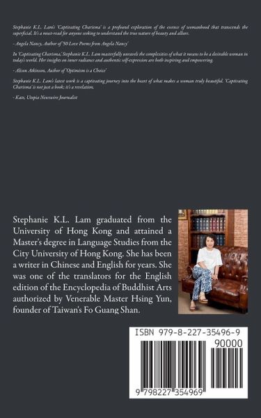 Unveil the Timeless Secrets to Captivating Charm and Authentic Radiance In a world obsessed with fleeting physical perfection, this transformative book shatters the myth that external beauty is merely skin-deep. Prepare to embark on a profound journey that will redefine how you perceive being a desirable and radiant woman. Through luminous descriptions, thought-provoking insights, and practical wisdom on how to become an alluring woman, it unlocks the realms where inner brilliance reigns supreme. Discover the enduring truth that genuine attractiveness transcends age, appearance, and societal norms, emanating instead from the depths of one's spirit, soul, and authentic self. Within these pages, you'll unravel the timeless qualities that have defined history's most captivating and influential women - qualities that exude overwhelming charisma, elegance, and allure. From cultivating empathy and compassion to embracing vulnerability and celebrating your unique individuality, this book serves as a powerful guide to unleashing the beauty that already resides within you. Prepare to be inspired by the remarkable stories of women who has defied conventional beauty standards, enthralling the world not with their physical appearance but with the radiance of their spirits. Explore the extraordinary power of confidence, resilience, and the everlasting pursuit of self-discovery, as you embark on a journey of self-exploration that will forever alter your perception of beauty. Whether you seek to enhance your self-assurance, forge deeper connections, or simply embrace the fullness of your authentic self, this book is a must-read for anyone longing to tap into their innate charm and radiate beauty from the inside out. Dispel the myths that have long confined how we perceive grace, and step into a reality where true desirability knows no bounds. Unlock the key to becoming a woman of timeless charm, one whose beauty transcends the superficial and leaves an indelible mark upon the world. Embrace the journey, and let this book be your guide as you unleash the captivating allure of your inner radiance, enthralling all who cross your path with the brilliance of your soul. Stephanie K.L. Lam's 'Captivating Charisma' is a profound exploration of the essence of womanhood that transcends the superficial. It's a must-read for anyone seeking to understand the true nature of beauty and allure. - Angela Nancy, Author of '50 Love Poems from Angela Nancy' In 'Captivating Charisma,' Stephanie K.L. Lam masterfully unravels the complexities of what it means to be a desirable woman in today's world. Her insights on inner radiance and authentic self-expression are both inspiring and empowering. - Alison Atkinson, Author of 'Optimism is a Choice' Stephanie K.L. Lam's latest work is a captivating journey into the heart of what makes a woman truly beautiful. 'Captivating Charisma' is not just a book; it's a revelation. - Kate, Utopia Newswire Journalist