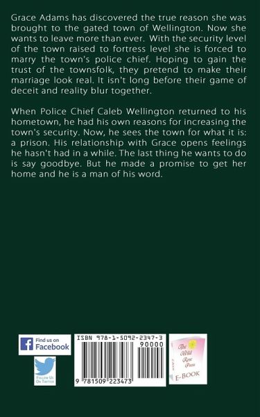 Grace Adams has discovered the true reason she was brought to the gated town of Wellington. Now she wants to leave more than ever. With the security level of the town raised to fortress level she is forced to marry the town's police chief. Hoping to gain the trust of the townsfolk, they pretend to make their marriage look real. It isn't long before their game of deceit and reality blur together. When Police Chief Caleb Wellington returned to his hometown, he had his own reasons for increasing the town's security. Now, he sees the town for what it is: a prison. His relationship with Grace opens feelings he hasn't had in a while. The last thing he wants to do is say goodbye. But he made a promise to get her home and he is a man of his word.