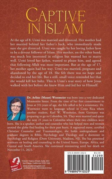 Dr. Arline (Maust) Westmeier was born into a very dedicated Mennonite home. From the time of her first commitment to Jesus at 3¿ years of age, she felt called to be a missionary. Dr. Westmeier went to language school in Costa Rica where another student, Karl W. Westmeier, from Germany was preparing to go to Colombia, SA. They were married and spent the next 21 years in Colombia where their two children were born. She is a speaker, author and counselor who has helped men and women around the globe find healing for their past hurts. A registered nurse, certified Christian Counselor and Traumatologist, she holds undergraduate and graduate degrees in Bible, Psychology and Theology and a doctorate in Psychology and Religion (Drew University, Madison, NJ). She has presented seminars on healing and counseling in the United States, Europe, Africa, and Central and South America. She continued ministering until her death on November 11, 2021.