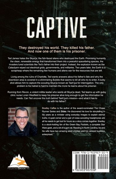 They destroyed his world. They killed his father.And now one of them is his prisoner. Ted James hates the Skya'ja, the fish-faced aliens who destroyed the Earth. Promising humanity the clean, renewable energy that transformed them into a peaceful spacefaring species, the invaders lured scientists like Ted's father into their project. Instead, the explosion known as the Cataclysm wiped out electrical grids, governments, and militaries. Two years later, the Earth is a scrapheap where the remaining few humans and aliens war for the resources that are left. Living among the ruins of Charlotte, Ted wants answers about his father's fate and why the downtown area is covered in a shimmering Bubble that seems to kill all who try to enter. A lucky shot allows him to capture the scouting Skya'ja known as Tash'jya for interrogation. The only problem is his hatred is hard to maintain the more he learns about his prisoner. Running from Revon, a violent militia leader who wants all Skya'ja dead, Ted teams up with gutsy clinic nurse, Loren Westfield, to keep his prisoner alive long enough to get the information he needs. Can Ted uncover the truth behind Tash'jya's mission-and what it has to do with his father?