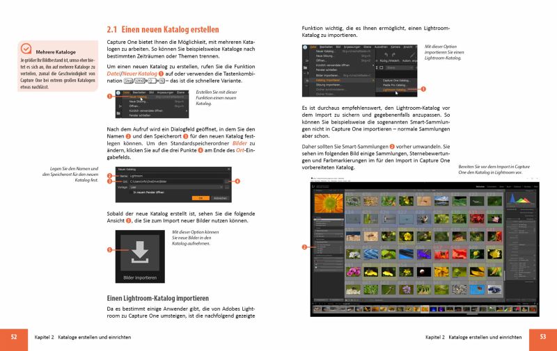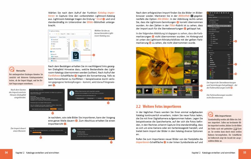 Das Benutzerinterface kennenlernenWerkzeugregisterkarten einsetzenFilter für Bewertungen nutzenKataloge erstellen und einrichtenImportieren, strukturieren und exportierenSammlungen, Metadaten und StichwörterFarben, Tiefen & Lichter gezielt optimierenStörende Objekte ruckzuck entfernenHigh Dynamic Range-Tool im EinsatzAutomatische Anpassungen konfigurierenRauschminderung und knackscharfe BilderArbeiten mit Ebenen und MaskenFilter und Effekte für mehr KreativitätProof nach VerarbeitungsvorgabeRAW-Konvertierung mit Capture One