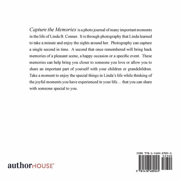 Capture the Memories is a photo journal of many important moments in the life of Linda B. Conner. It is through photography that Linda learned to take a minute and enjoy the sights around her. Photography can capture a single second in time. A second that once remembered will bring back memories of a pleasant scene, a happy occasion or a specific even. These memories can help bring your closer to someone you love or allow you to share an important part of yourself with your children or grandchildren. Take a moment to enjoy the special things in Linda's life while thinking of the joyful moments you have experienced in your life... that you can share with someone special to you.