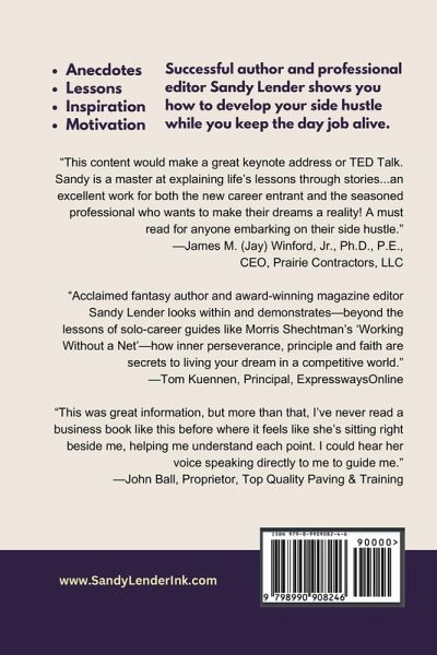 Sandy Lender is an award-winning storyteller so the anecdotes and lessons in the first half of this inspirational, motivational business book flow with a comfortable, conversational style. She's also a professional magazine editor with a three-decades career, so the early instruction gives way to introspective and interactive exercises where the reader is encouraged to write down big-picture interests, list skills, participate in SWOT analysis, map plans, stack goals, and of course assess their dragon score to build a successful and rewarding side hustle. More than an exposition on building a career, "Capture Your Dream" is a catalyst for setting real-world goals to survive and thrive beyond the day job into the passion project of your youth. "I think this content would make a great keynote address or TED Talk. I'm greatly impressed. Sandy is a master at explaining life's lessons through stories. True, compelling and easy with which to associate. This is an excellent work for both the new career entrant and the seasoned professional who wants to make their dreams a reality! A must read for anyone embarking on their side hustle."-James M. (Jay) Winford, Jr., Ph.D., P.E., CEO of Prairie Contractors, LLC "Socrates said, 'The unexamined life is not worth living.' Acclaimed fantasy author and award-winning magazine editor Sandy Lender looks within and demonstrates-beyond the lessons of solo-career guides like Morris Shechtman's 'Working Without a Net'-how inner perseverance, principle and faith are secrets to living your dream in a competitive world."-Tom Kuennen, Principal, ExpresswaysOnline "This was great information, but more than that, I've never read a business book like this before where it feels like she's sitting right beside me, helping me understand each point. I could hear her voice over my shoulder speaking directly to me to guide me."-John Ball, Proprietor, Top Quality Paving & Training