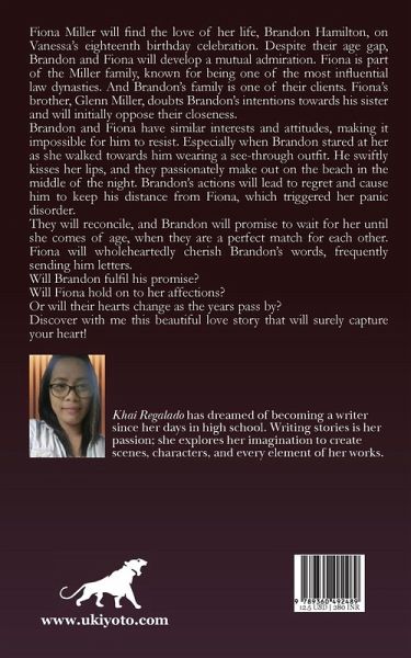 Fiona Miller will find the love of her life, Brandon Hamilton, on Vanessa's eighteenth birthday celebration. Despite their age gap, Brandon and Fiona will develop a mutual admiration. Fiona is part of the Miller family, known for being one of the most influential law dynasties. And Brandon's family is one of their clients. Fiona's brother, Glenn Miller, doubts Brandon's intentions towards his sister and will initially oppose their closeness. Brandon and Fiona have similar interests and attitudes, making it impossible for him to resist. Especially when Brandon stared at her as she walked towards him wearing a see-through outfit. He swiftly kisses her lips, and they passionately make out on the beach in the middle of the night. Brandon's actions will lead to regret and cause him to keep his distance from Fiona, which triggered her panic disorder. They will reconcile, and Brandon will promise to wait for her until she comes of age, when they are a perfect match for each other. Fiona will wholeheartedly cherish Brandon's words, frequently sending him letters. Will Brandon fulfil his promise? Will Fiona hold on to her affections? Or will their hearts change as the years pass by? Discover with me this beautiful love story that will surely capture your heart!