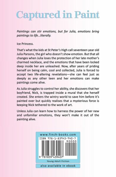 Paintings can stir emotions, but for Julia, emotions bring paintings to life...literally. Ice Princess. That's what the kids at St Peter's High call seventeen-year-old Julia Parsons, the girl who doesn't show emotion. But that all changes when Julia loses the protection of her late mother's charmed necklace, and the emotions that have been locked deep inside her are unleashed. Now, after years of priding herself on being calm, cool and collected, Julia is forced to accept two life-altering revelations-she can feel just as deeply as any other teen and her emotions can make paintings come alive. As Julia struggles to control her ability, she discovers that her boyfriend, Nick, is trapped inside a mural that she herself created. She enters the wintry world to save him before it's painted over but quickly realises that a mysterious force is keeping Nick tethered to the work of art. Unless Julia can learn how to harness the power of her new and unfamiliar emotions, they won't make it out of the painting alive.
