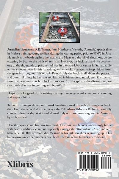 Australian Lieutenant, A.E. Tranter, from Heathcote, Victoria, (Australia) spends time in Malaya training young soldiers during the waiting period prior to WW2 in Asia. He survives the battle against the Japanese in Muar and the fall of Singapore, before escaping by boat to the wilds of Sumatra. However, his luck fails and he becomes one of the thousands of prisoners of war in the slave labour camps in Sumatra. He writes a tender book for his little daughter which he manages to keep hidden from the guards throughout his ordeal. Remarkably the book is all about the pleasant and beautiful things he has seen and learned in his enforced travel, even if witnessed from the heat and stench of locked box cars " ... in spite of the discomfort , we saw much that was interesting and beautiful". Despite this long ordeal, his writing conveys a message of tolerance, understanding and responsibility. Tranter is amongst those put to work building a road through the jungle in Atjeh, then later, the second death railway - the Pakenbaroe/Moeara Railway, ironically completed on the day WW2 ended; never used and now forgotten in Australia by all but a few. Here the Japanese and Koreans' treatment of the prisoners becomes increasingly brutal with death and disease common, especially amongst " the Romushas" - Asian enforced labourers - 80 000 of whom die. Meanwhile his little daughter is growing up in his hometown, under her mother's care, both unaware of her father's whereabouts.
