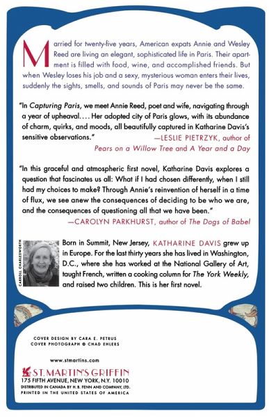 After twenty five years of marriage, Annie and Wesley are living the type of elegant, sophisticated life in Paris that many Americans dream about. Their apartment in the Marais district is filled with wonderful food, accomplished friends, and good wine. All of this changes when Wesley loses his job and an attractive, magnetic woman enters their lives. Suddenly, in Katharine Davis' atmospheric first novel Capturing Paris, the sights, smells and sounds of Paris are cast in a different light, and may never be the same. "... [R]eaders with a soft spot for the city of lights will want to give this a look." - Publishers Weekly