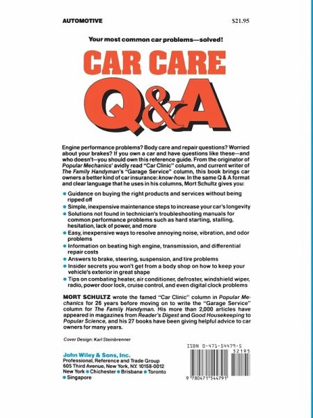 Based on Schultz's 26 years of writing Popular Mechanics' "Car Clinic" column, this indispensable book has it all. Auto owners will find out how to touch up nicks in the paint, when to replace antifreeze, how to detect a braking deficiency before it becomes serious, and much more. Features hundreds of the most frequently asked questions, plus 50 illustrations.