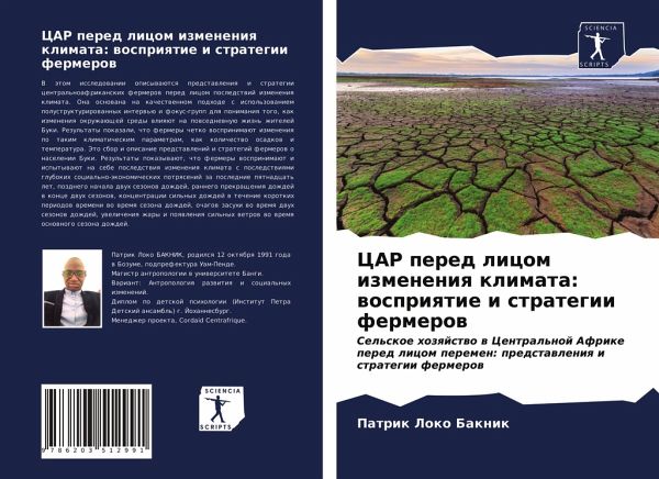 V ätom issledowanii opisywaütsq predstawleniq i strategii central'noafrikanskih fermerow pered licom posledstwij izmeneniq klimata. Ona osnowana na kachestwennom podhode s ispol'zowaniem polustrukturirowannyh interw'ü i fokus-grupp dlq ponimaniq togo, kak izmeneniq okruzhaüschej sredy wliqüt na powsednewnuü zhizn' zhitelej Buki. Rezul'taty pokazali, chto fermery chetko wosprinimaüt izmeneniq po takim klimaticheskim parametram, kak kolichestwo osadkow i temperatura. Jeto sbor i opisanie predstawlenij i strategij fermerow o naselenii Buki. Rezul'taty pokazywaüt, chto fermery wosprinimaüt i ispytywaüt na sebe posledstwiq izmeneniq klimata s posledstwiqmi glubokih social'no-äkonomicheskih potrqsenij za poslednie pqtnadcat' let, pozdnego nachala dwuh sezonow dozhdej, rannego prekrascheniq dozhdej w konce dwuh sezonow, koncentracii sil'nyh dozhdej w techenie korotkih periodow wremeni wo wremq sezona dozhdej, ochagow zasuhi wo wremq dwuh sezonow dozhdej, uwelicheniq zhary i poqwleniq sil'nyh wetrow wo wremq osnownogo sezona dozhdej.