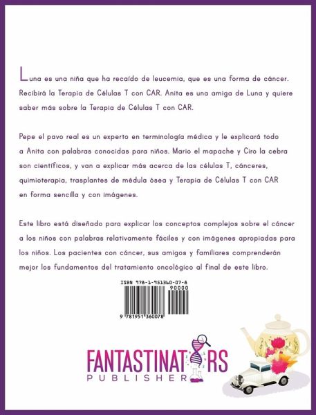 Toto is a young girl who has relapsed leukemia, a form of cancer. She will receive CAR T-Cell therapy. Mumoo, a friend of Toto, wants to know more about CAR T-Cell therapy. Petey the Peacock, an expert in Medical Terminology, will be explaining everything to Mumoo in children’s words. Rover the Racoon and Zozo the Zebra are scientists, and they are going to explain more about T-Cells, cancers, chemotherapy, and bone marrow transplants, as well as CAR T-Cell therapy in easy words with pictures. This book is designed to explain difficult cancer concepts to children in relatively easy words with child-friendly pictures. Cancer patients and their young friends and families will better understand the basics of cancer treatment by the end of this book.