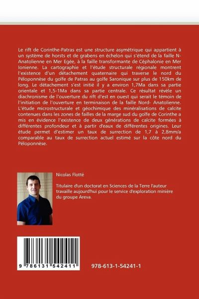 Le rift de Corinthe-Patras est une structure asymétrique qui appartient à un système de horsts et de grabens en échelon qui s'étend de la faille N- Anatolienne en Mer Egée, à la faille transformante de Céphalonie en Mer Ionienne. La cartographie et l'étude structurale régionale montrent l'existence d'un détachement quaternaire qui traverse le nord du Péloponnèse du golfe de Patras au golfe Saronique sur plus de 150km de long. Le détachement s'est initié il y a environ 1,7Ma dans sa partie orientale et 1,5-1Ma dans sa partie centrale. Ce résultat révèle un diachronisme de l'ouverture du rift d'est en ouest qui serait le témoin de l'initiation de l'ouverture en terminaison de la faille Nord- Anatolienne. L'étude microstructurale et géochimique des minéralisations de calcite contenues dans les zones de failles de la marge sud du golfe de Corinthe a mis en évidence l'existence de deux générations de calcite formées à différentes profondeur et à partir d'eaux de différentes origines. Leur étude permet d'estimer un taux de surrection de 1,7 à 2,8mm/a comparable au taux de surrection actuel estimé sur la côte nord du Péloponnèse.