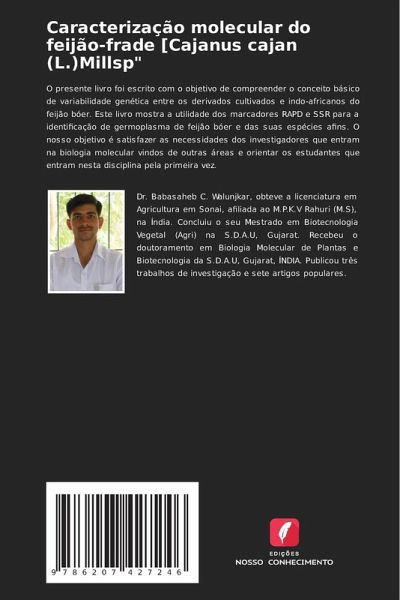 O presente livro foi escrito com o objetivo de compreender o conceito básico de variabilidade genética entre os derivados cultivados e indo-africanos do feijão bóer. Este livro mostra a utilidade dos marcadores RAPD e SSR para a identificação de germoplasma de feijão bóer e das suas espécies afins. O nosso objetivo é satisfazer as necessidades dos investigadores que entram na biologia molecular vindos de outras áreas e orientar os estudantes que entram nesta disciplina pela primeira vez.