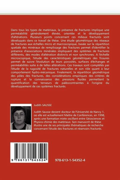 Dans tous les types de matériaux, la présence de fractures implique une perméabilité généralement élevée, orientée et le développement d'altérations. Plusieurs points concernant ces milieux fracturés sont développés dans ce travail de thèse. Une étude géométrique des réseaux de fractures aux échelles micro et macroscopique, basée sur la répartition spatiale des minéraux de remplissage des fractures permet d'identifier la présence d'associations minérales impliquant des systèmes de fractures différents, des modes d'altération distincts et non synchrones. A l'échelle microscopique, l'étude des caractéristiques géométriques des fissures permet de suivre l'évolution de leurs porosités, surfaces d'échanges et perméabilités suite à de telles altérations. Ces travaux sont complétés par l'étude de la rugosité de fractures naturelles et son rôle quant à leur comportement hydro-mécanique. Finalement, la répartition géométrique des pôles des fractures, des considérations empiriques des critères de rupture et la connaissance des pressions fluides permettent la quantification des tenseurs de paléocontraintes à l'origine du développement de ces systèmes fracturés.