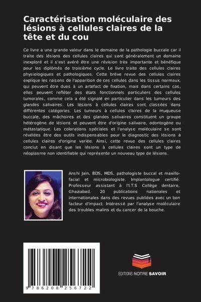 Ce livre a une grande valeur dans le domaine de la pathologie buccale car il traite des lésions des cellules claires qui sont généralement un domaine inexploré et il s'est avéré être une révision très importante et bénéfique pour les diplômés de troisième cycle. Le livre traite des cellules claires physiologiques et pathologiques. Cette brève revue des cellules claires explique les raisons de l'apparition de ces cellules dans les tissus normaux, qui peuvent être dues à un artefact de fixation, mais dans certains cas, elles peuvent refléter des états fonctionnels particuliers des cellules tumorales, comme cela a été signalé en particulier dans les tumeurs des glandes salivaires. Les lésions à cellules claires sont classées dans différentes catégories. Les tumeurs à cellules claires de la muqueuse buccale, des mâchoires et des glandes salivaires constituent un groupe hétérogène de lésions et peuvent être d'origine salivaire, odontogène ou métastatique. Les colorations spéciales et l'analyse moléculaire se sont révélées être des outils indispensables pour le diagnostic des lésions à cellules claires d'origine variée. Ainsi, cette revue des cellules claires conclut en disant que les lésions à cellules claires sont un type de néoplasme non identifiable qui représente un nouveau type de lésions.
