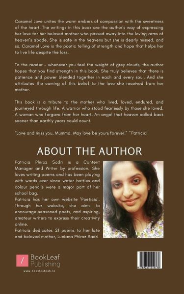 ""Caramel Love unites the warm embers of compassion with the sweetness of the heart. The writings in this book are the author's way of expressing her love for her beloved mother who passed away into the loving arms of heaven's abode. She is safe in the heavens but she is dearly missed, and so, Caramel Love is the poetic telling of strength and hope that helps her to live life despite the loss. To the reader - whenever you feel the weight of grey clouds, the author hopes that you find strength in this book. She truly believes that there is patience and power blended together in each and every soul. And she attributes the coming of this belief to the love she received from her mother. This book is a tribute to the mother who lived, loved, endured, and journeyed through life. A warrior who stood fearlessly by those she loved. A woman who forgave from her heart. An angel that heaven called back sooner than earthly years could count. "Love and miss you, Mumma. May love be yours forever." ~Patricia""