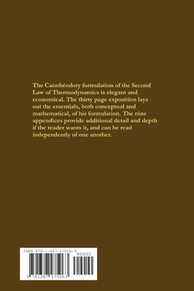 This monograph explains the Constantin Carathéodory theory of the Second Law of Thermodynamics. His theory is based on the geometry of the thermodynamic state space and the calculus of Pfaffian differentials.