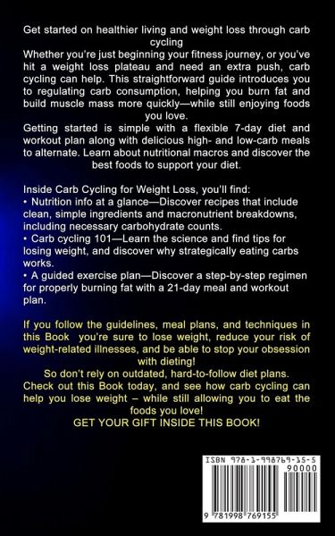 Get started on healthier living and weight loss through carb cycling Whether you're just beginning your fitness journey, or you've hit a weight loss plateau and need an extra push, carb cycling can help. This straightforward guide introduces you to regulating carb consumption, helping you burn fat and build muscle mass more quickly-while still enjoying foods you love. Getting started is simple with a flexible 7-day diet and workout plan along with delicious high- and low-carb meals to alternate. Learn about nutritional macros and discover the best foods to support your diet. Inside Carb Cycling for Weight Loss, you'll find:Nutrition info at a glance-Discover recipes that include clean, simple ingredients and macronutrient breakdowns, including necessary carbohydrate counts. Carb cycling 101-Learn the science and find tips for losing weight, and discover why strategically eating carbs works. A guided exercise plan-Discover a step-by-step regimen for properly burning fat with a 21-day meal and workout plan. If you follow the guidelines, meal plans, and techniques in this Book you're sure to lose weight, reduce your risk of weight-related illnesses, and be able to stop your obsession with dieting! So don't rely on outdated, hard-to-follow diet plans. Check out this Book today, and see how carb cycling can help you lose weight - while still allowing you to eat the foods you love! GET YOUR GIFT INSIDE THIS BOOK!