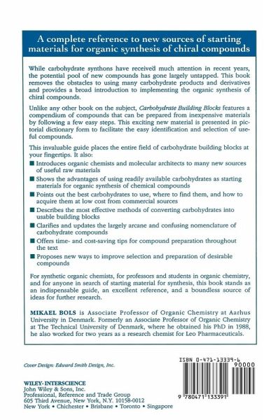 Bols delivers an original and effective presentation that unravels secrets from carbohydrate chemistry. He specifically describes which carbohydrates are best used in Synthesis and how to obtain them. The first half of this indispensable reference contains a dictionary-like list of compounds that can be prepared in a few steps from commercially cheap carbohydrates. The latter section describes which carbohydrates are commercially and inexpensively available along with the chemistry that can be used to convert them into useful building blocks.