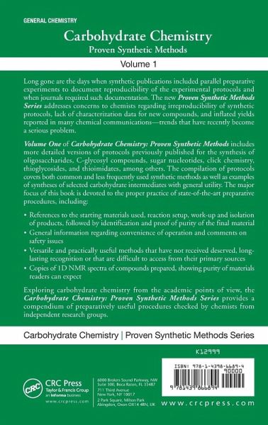 Long gone are the days when synthetic publications included parallel preparative experiments to document reproducibility of the experimental protocols and when journals required such documentation. The new Proven Synthetic Methods Series addresses concerns to chemists regarding irreproducibility of synthetic protocols, lack of characterization data for new compounds, and inflated yields reported in many chemical communications-trends that have recently become a serious problem. Volume One of Carbohydrate Chemistry: Proven Synthetic Methods includes more detailed versions of protocols…mehr