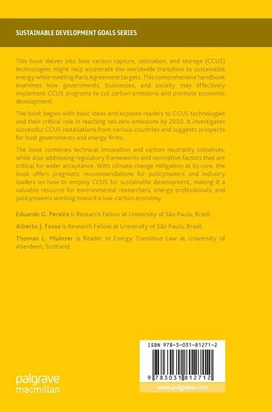 This book delves into how carbon capture, utilization, and storage (CCUS) technologies might help accelerate the worldwide transition to sustainable energy while meeting Paris Agreement targets. This comprehensive handbook examines how governments, businesses, and society may effectively implement CCUS programs to cut carbon emissions and promote economic development.