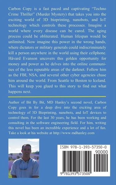 Carbon Copy is a fast paced and captivating "Techno Crime Thriller" that takes you into the exciting world of 3D bioprinting, nanobots, and IoT technology. Imagine a world where every disease can be cured. The aging process could be obliterated. Human lifespan would be unlimited. Now imagine this power in the wrong hands, where dictators or military generals could indiscriminately kill a person anywhere in the world using their cellphone. Håvard Evans uncovers this golden opportunity for money and power as he delves into the online communities of the less reputable areas of the darknet. Follow him as the FBI, NSA, and several other cyber agencies chase him around the world. From Seattle to Boston to Iceland. This will keep you glued to this story to find out what happens next.