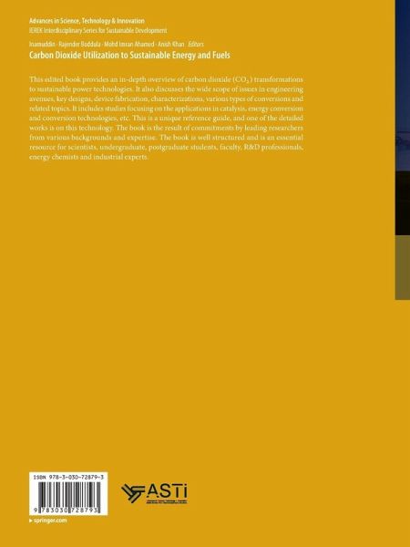 This edited book provides an in-depth overview of carbon dioxide (CO2) transformations to sustainable power technologies. It also discusses the wide scope of issues in engineering avenues, key designs, device fabrication, characterizations, various types of conversions and related topics. It includes studies focusing on the applications in catalysis, energy conversion and conversion technologies, etc. This is a unique reference guide, and one of the detailed works is on this technology. The book is the result of commitments by leading researchers from various backgrounds and expertise. The book is well structured and is an essential resource for scientists, undergraduate, postgraduate students, faculty, R&D professionals, energy chemists and industrial experts.
