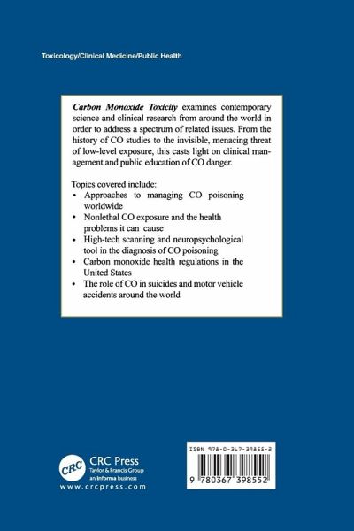 Edited by one of the world's top CO experts, Carbon Monoxide Toxicity compiles scientific information and clinical research to address the gamut of health-related CO issues. Lauded by reviewers as a seminal text, it details the history of studies and explains the hidden threat of chronic low-level exposure that has made CO the leading agent in US poisoning deaths. The broad themes center on clinical management of various forms of CO poisoning and education of the public on its constant danger. The book provides a thorough review for all toxicologists, regulators, and investigators, but is especially valuable to those involved with pulmonary or combustion toxicology.