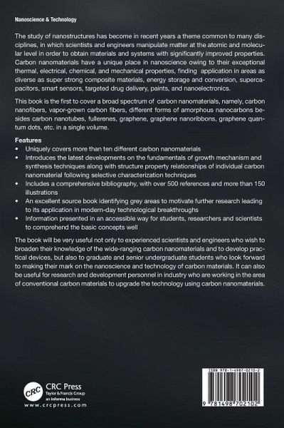 The study of nanostructures has become, in recent years, a theme common to many disciplines, in which scientists and engineers manipulate matter at the atomic and molecular level in order to obtain materials and systems with significantly improved properties. Carbon nanomaterials have a unique place in nanoscience owing to their exceptional thermal, electrical, chemical, and mechanical properties, finding application in areas as diverse as super strong composite materials, energy storage and conversion, supercapacitors, smart sensors, targeted drug delivery, paints, and nanoelectronics. This book is the first to cover a broad spectrum of carbon nanomaterials, namely carbon nanofibers, vapor-grown carbon fibers, different forms of amorphous nanocarbons besides carbon nanotubes, fullerenes, graphene, graphene nanoribbons, graphene quantum dots, etc. in a single volume.