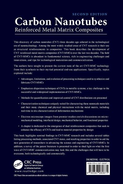 1. Introduction. 2. Dispersion of Carbon Nanotubes in the Metal Matrix. 3. Composite Processing Techniques. 4. Characterization Technique for CNT-MMC Materials. 5. Carbon Nanotube Reinforced Metal Matrix Composite (CNT-MMC) Systems. 6. Mechanics of CNT-MMCs. 7. Interfacial Phenomena in CNT-MMCs. 8. Tribological, Transport, and Functional Properties & Behavior. 9. Synergistic Interactions of CNT with Secondary Reinforcements. 10. Computational Studies in CNT-MMCs. 11. Patents and Commercialization. 12. Summary and Future Directions.