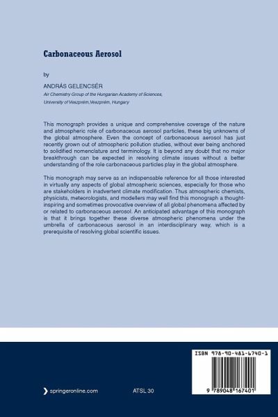 This monograph provides a unique and comprehensive coverage of the nature and atmospheric role of carbonaceous aerosol particles, these big unknowns of the global atmosphere. Even the concept of carbonaceous aerosol has just recently grown out of atmospheric pollution studies, without ever being anchored to solidified nomenclature and terminology. It is beyond any doubt that no major breakthrough can be expected in resolving climate issues without a better understanding of the role carbonaceous particles play in the global atmosphere.