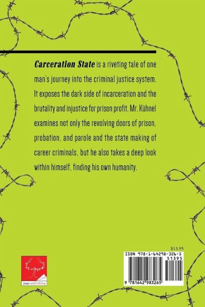 Carceration State is a riveting tale of one man's journey into the criminal justice system. It exposes the dark side of incarceration and the brutality and injustice for prison profit. Mr. Kühnel examines not only the revolving doors of prison, probation, and parole and the state making of career criminals, but he also takes a deep look within himself, finding his own humanity. JAMES RKPage 114