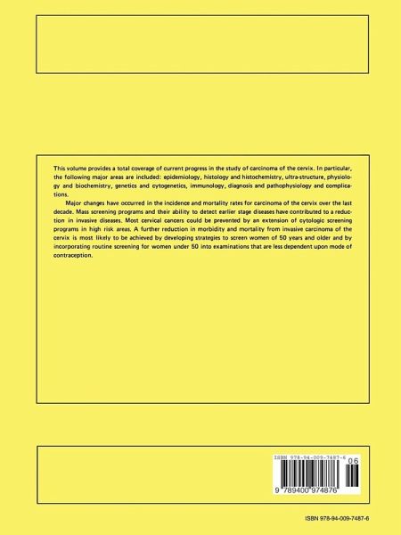 Various scientific evaluations taken from these chapters were presented during the international symposium, 'Carcinoma of the Cervix,' which was held from September 4-7, 1980 in Kiawah Island, Charleston, South Carolina, U.S.A. An international selection of research investigators have contributed reviews designed to be informative to medical, graduate and post-graduate students, as well as clinicians, oncologists and investigators working in the area of female carcinoma. An attempt has been made to provide a total coverage of current progress in carcinoma of the cervix. In particular, the following major areas are included: Epidemiology, Histology & Histochemistry, Ultra structure, Physiology & Biochemistry, Genetics & Cytogenetics, Immunology, Diagnosis, and Patho physiology & Complications. Major changes have occurred in incidence and mortality rates for carcinoma of the cervix in the past decade. Mass screening programs and their ability to detect earlier stage diseases have attributed to a reduction in invasive diseases. Most cervical cancers could be prevented by an extension of cytologic screening programs in high risk areas. Greater resources must be provided to reach high risk areas in order to prevent the occurrence of cervical cancer.