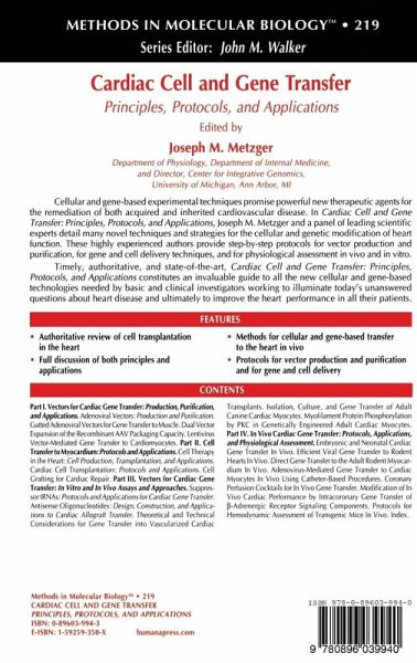 "The book is surprisingly up-to-date...it is quite unique, as there is no similar compendium of detailed protocols. I found the book to be highly readable. It is a particularly useful reference work for cardiovascular scientists who are already using gene transfer approaches in their research. It is also a great starting place for cardiovascular investigators who are just beginning to use these methods in their labs." -Doody's Health Sciences Book Review Journal