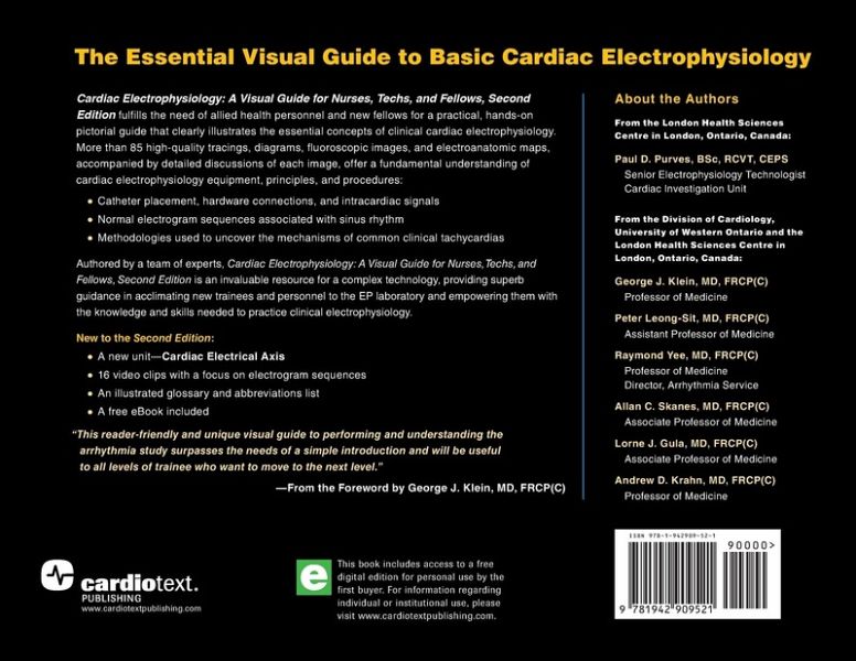 Cardiac Electrophysiology: A Visual Guide for Nurses, Techs, and Fellows, Second Edition fulfills the need of allied health personnel and new fellows for a practical, hands-on pictorial guide that clearly illustrates the essential concepts of clinical cardiac electrophysiology. More than 85 high-quality tracings, diagrams, fluoroscopic images, and electroanatomic maps, accompanied by detailed discussions of each image, offer a fundamental understanding of cardiac electrophysiology equipment, principles, and procedures: - Catheter placement, hardware connections, and intracardiac signals - Normal electrogram sequences associated with sinus rhythm - Methodologies used to uncover the mechanisms of common clinical tachycardias Authored by a team of experts, Cardiac Electrophysiology: A Visual Guide for Nurses, Techs, and Fellows, Second Edition is an invaluable resource for a complex technology, providing superb guidance in acclimating new trainees and personnel to the EP laboratory and empowering them with the knowledge and skills needed to practice clinical electrophysiology. New to the Second Edition: - A new unit-Cardiac Electrical Axis - 16 video clips with a focus on electrogram sequences - An illustrated glossary and abbreviations list