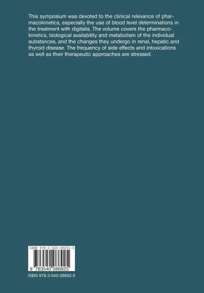 1 Evaluation of Different Methods for Determining Serum Concentrations of Cardiac Glycosides.- 2 A New Simple Assay for Determining Digoxin Serum Levels.- 3 Chloroform-Extractable and Polar Metabolites Examined With Different Assays.- 4 Studies of the Metabolism of Digoxin and Digitoxin Using Double Isotope Dilution Derivative Methods.- 5 Occurence and Chemical Nature of Polar Water-Soluble Digoxin Metabolites.- 6 Pharmacokinetics and Metabolism of Digitoxin in the Human.- 7 Dihydrodigitoxin, a Metabolite of Digitoxin in Humans.- 8 Enterohepatic Circulation of Digitoxin Metabolites in the Dog.- 9 ?-Methyl-Digoxin, a New Lipophilic Digoxin Derivative.- 10 Tissue Distribution of Cardiac Glycosides.- 11 Plasma-Tissue Distribution of Different Cardiac Glycosides.- 12 Significance of Plasma Concentration of Digoxin in Relation to the Myocardial Concentration of the Drug.- 13 Influence of Thyroid Function on the Pharmacokinetics of Cardiac Glycosides.- 14 Effect of Jejunoileal Bypass on the Bioavailability of Digoxin in Man.- 15 Bioavailability of Digoxin in Renal Insufficiency and Heart Failure.- 16 Bioavailability Studies: Their Influence on the Clinical Use of Digitalis.- 17 Comparative Pharmacokinetics of Various Digoxin Preparations in Man.- 18 Digoxin Pharmacokinetics and Their Relation to Clinical Dosage Parameters.- 19 Clinical Interpretation of Serum Concentrations of Cardiac Glycosides.- 20 Assessment of Digoxin Action by a Pharmacodynamic Biochemical Method.- 21 Relationships Between Doses, Plasma Levels and Cardiac Effects Under Digitalis Treatment.- 22.1 Therapeutic Implications of Digoxin Kinetics in Impaired Renal Function.- 22.2 Peak Plasma Digoxin Concentration and Cardiotoxicity.- 22.3 Biliary Excretion of ?-Acetyl-Digoxin in Man.- 23 DigitoxinPharmacokinetics in Patients With Renal Disease.- 24 Increased Digitalis Tolerance in Uremic Patients.- 25 Digitoxin and Digoxin in Patients With Chronic Renal Failure and on Hemodialysis.- 26 International Patterns of Clinical Use and Toxicity of Digitalis Glycosides: Report From the Boston Collaborative Drug Surveillance Program.- 27 Pharmacokinetic and Clinical Effects During the Predistribution Phase of Digoxin Treatment.- 28 Digitalis Intoxication: Clinical and Experimental Work.- 29 Digitalis Intoxication: Specificity of Clinical and Electrocardiographic Signs.- 30 Treatment of Digitalis Intoxication.- 31 Biologic Effects of Specific Antibodies in Reversing the Pharmacologic and Toxic Effects of Digoxin.- 32 Reversal of Digitoxin Toxicity and Modification of Pharmacokinetics by Specific Antibodies.- 33 ?-Methyl-Digoxin Disposition During Spironolactone Treatment.- 34 Digitoxin Disposition Under Rifampicin Treatment.- 35 Is There a Need for New Cardiac Glycosides? For More Blood Level Determinations?.