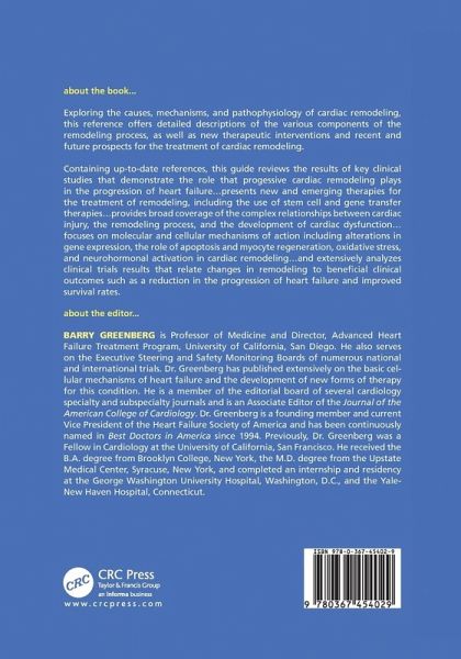 BARRY GREENBERG is Professor of Medicine and Director, Advanced Heart Failure Treatment Program, University of California, San Diego. He also serves on the Executive Steering and Safety Monitoring Boards of numerous national and international trials. Dr. Greenberg has published extensively on the basic cellular mechanisms of heart failure and the development of new forms of therapy for this condition. He is a member of the editorial board of several cardiology specialty and subspecialty journals and is an Associate Editor of the Journal of the American College of Cardiology. Dr. Greenberg is a founding member and current Vice President of the Heart Failure Society of America and has been continuously named in Best Doctors in America since 1994. Previously, Dr. Greenberg was a Fellow in Cardiology at the University of California, San Francisco. He received the B.A. degree from Brooklyn College, New York, the M.D. degree from the Upstate Medical Center, Syracuse, New York, and completed an internship and residency at the George Washington University Hospital, Washington, D.C., and the Yale-New Haven Hospital, Connecticut.
