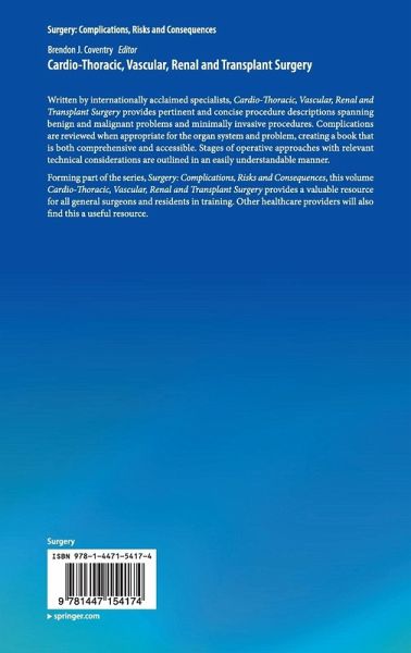 Forming part of the series, Surgery: Complications, Risks and Consequences, this volume Cardio-Thoracic, Vascular, Renal and Transplant Surgery provides a valuable resource for all general surgeons and residents in training. Other healthcare providers will also find this a useful resource.