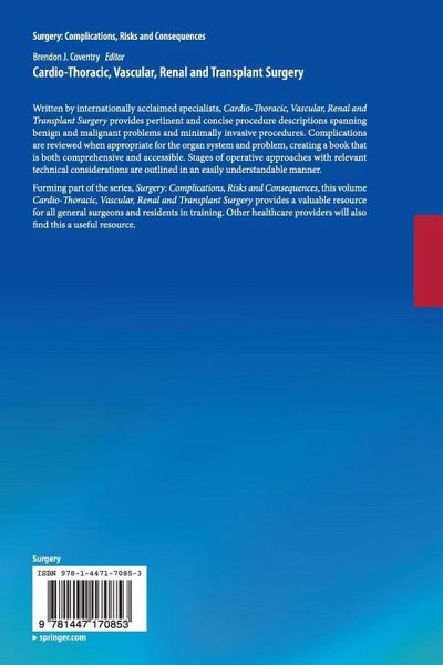 Forming part of the series, Surgery: Complications, Risks and Consequences, this volume Cardio-Thoracic, Vascular, Renal and Transplant Surgery provides a valuable resource for all general surgeons and residents in training. Other healthcare providers will also find this a useful resource.
