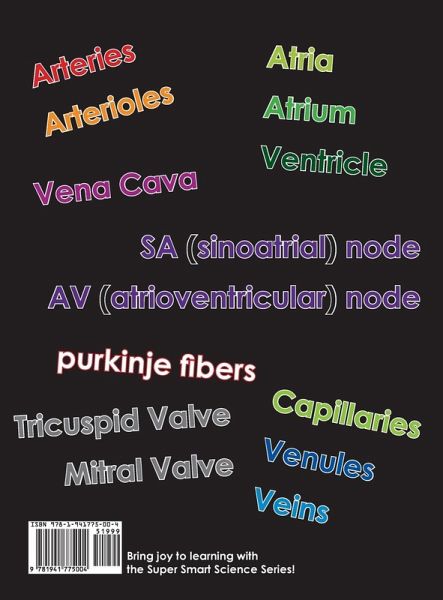 Learn about: arteries, arterioles, capillaries, venules, veins, atria, ventricles, superior and inferior vena cava, pulmonary artery and vein, aorta, tricuspid and mitral valve, sinoatrial node, atrioventricular node, and purkinje fibers. Understand each of these terms and where they are located in this color-packed guide to the heart! For all ages to enjoy.