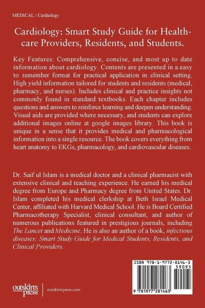 Comprehensive yet Concise - Covers the most up-to-date clinical information in cardiology, including pharmacology, pharmaceutics, dosing, and practical knowledge. High-Yield & practical - Designed for use in clinical settings, presenting information in a easy to remember format. Tailored for students & residents - Ideal for medical, pharmacy, and nursing students, as well as residents seeking a quick and effective resources. Beyond Standard Textbooks - Include valuable clinical insights and practice pearls not commonly found in traditional medical textbooks. Active Learning Approach - Features chapters based questions and answers to reinforce knowledge and deepen understanding. Visual Learning Aids - Provides essential diagrams and references to online image libraries for enhanced comprehension.