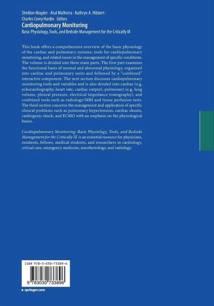 Cardiopulmonary Monitoring: Basic Physiology, Tools, and Bedside Management for the Critically Ill is an essential resource for physicians, residents, fellows, medical students, and researchers in cardiology, critical care, emergency medicine, anesthesiology, and radiology.