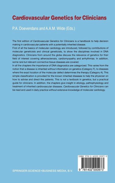 All physicians practicing medicine encounter patients suffering from cardiovascular disease. This book has been outlined in such a way that vascular surgeons, general internists, neurologists and cardiologists should be able to use it. The book covers the complete scope of cardiac diseases in addition to chapters on hypertension and atherosclerosis. In many patients there is a family history of cerebrovascular accidents, myocardial infarction or peripheral arterial disease. Also in patients reporting collaps, palpitations and arrhythmias the family is crucial and can provide clues to a genetic cause of the disease. This book is published to guide physicians in the process of determining whether a genetic component is likely to be present. Furthermore, information is provided what the possibilities and limitations of DNA diagnostic techniques are. Finally, the importance of newly identified categories of potential patients, i. e. gene carriers without symptoms or any inducible sign of disease, is highlighted. For some patients a genetic diagnosis is essential to determine appropriate therapy and for counseling? In some other diseases DNA diagnostic tools are available but the relevant for the patients may be less clear. In other families the search for a disease causing gene is ongoing and the possibilities to find genes and to unravel the pathophysiology of the disease is limited by the lack of patients. To give insight into the current state of genetic diagnostics, the authors have classified the cardiovascular diseases.