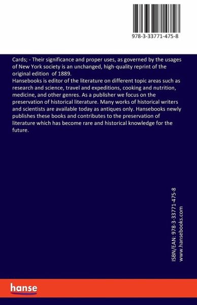 Cards; - Their significance and proper uses, as governed by the usages of New York society is an unchanged, high-quality reprint of the original edition of 1889.